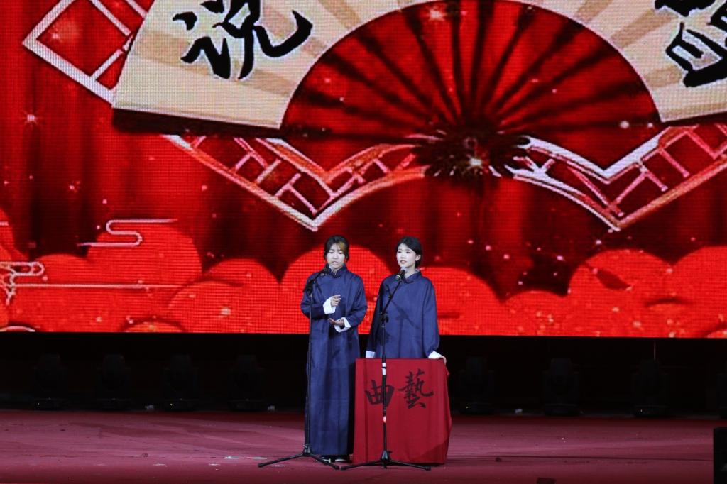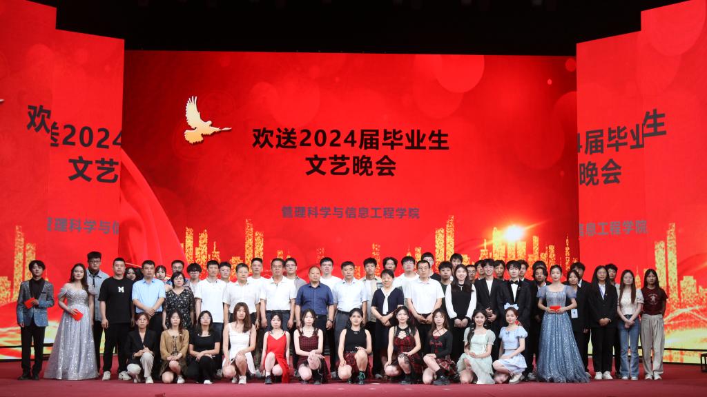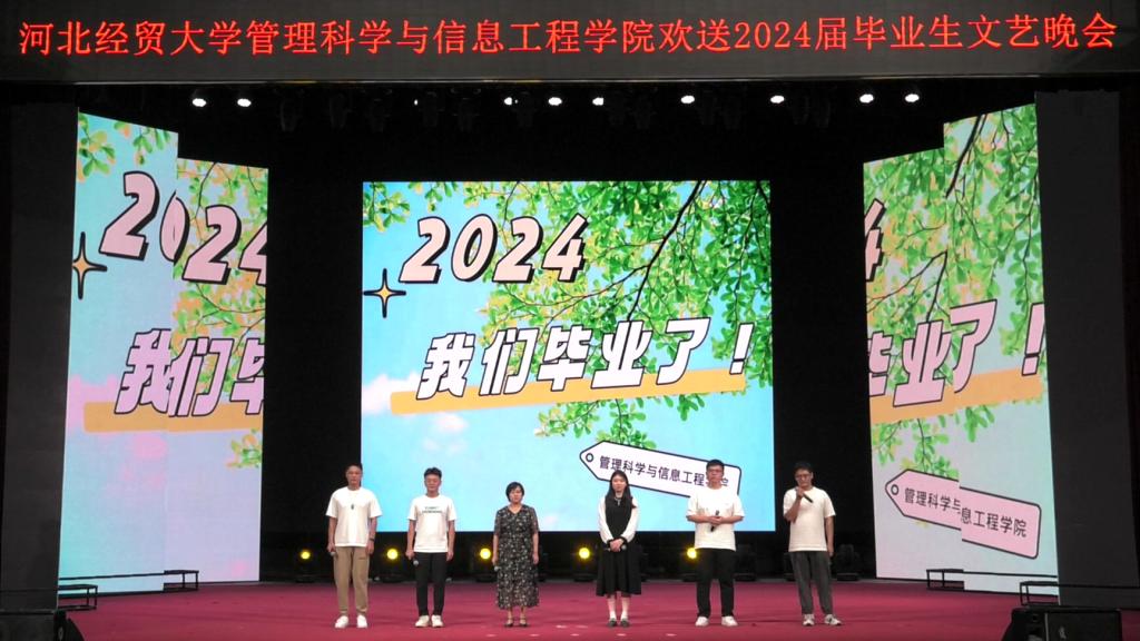 晚会在动感十足的爵士舞《Magnetic》中拉开序幕。公司党委书记王剑彪向毕业生表达了诚挚的祝愿,叮嘱同学们要学会自我欣赏、学会独立坚强;希望同学们努力拼搏,不负韶华,不负时代,欢迎同学们常回家看看。毕业班辅导员带来的诗歌朗诵真挚而热烈,饱含深情,让人动容。武术与琵琶碰撞出了不一样的火花,给同学们带来了震撼的体验;小品《扇子的意义》带给师生欢声笑语的同时又不失温情,引起了同学们强烈的共鸣;相声《翻译情书》贴近生活,引得台下欢声一片;心理剧《黑与白》在欢笑中更发人深省;民族舞蹈《西楼别序》尽显经贸学子的优雅与端庄;串烧舞蹈、歌曲《玫瑰少年》、《你不知道的事》《想把你留在这里》等精彩纷呈,给同学们带来了不一样的视听盛宴,一首《启程》承载着老师对同学们的祝愿与期望,将现场氛围推向了高潮。