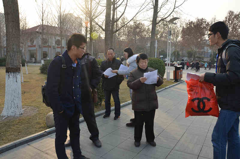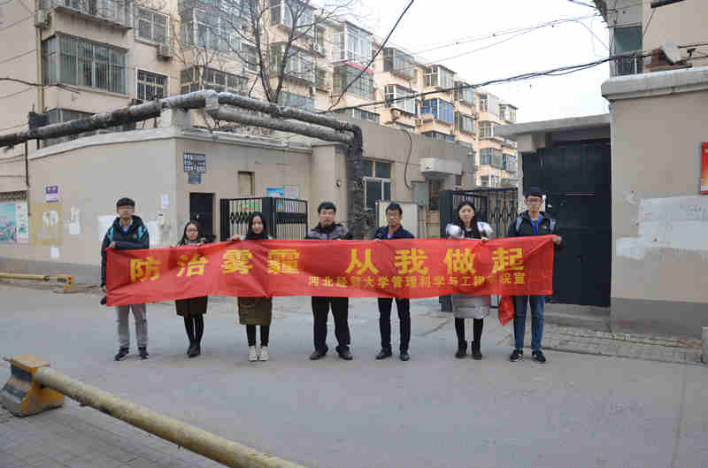 实践最后一天,小分队来到石家庄市新华区,走访了河北省环境保护厅,并深入社区、街头,同不同层次、不同年龄、不同职业的人进行了面对面的交流,就雾霾的产生、雾霾的危害、雾霾对生活的影响、雾霾的防治等问题进行了调研。小分队还向广大市民预防雾霾危害的知识,并分发了“向雾霾说‘不’”倡议书以及防雾霾口罩,呼吁广大市民积极投入到"保护环境,共防雾霾"的行列中来,为美丽河北建设作出积极贡献。(撰稿:朱越 摄影:周新雨)