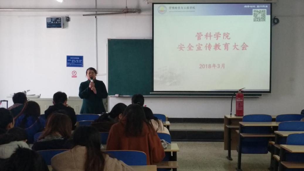 为做好2018年春季开学安全风险防范工作,3月12日,管理科学与工程公司在北三教A501召开春季安全宣传教育大会。大会特邀冀消防安防咨询中心李云峰教官做了消防讲解和培训,公司党委副书记张晓军出席并主持,公司200余名员工参加。