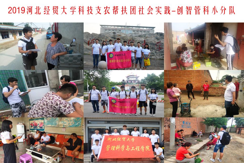 创智管科小分队由3名教师和7名员工组成,在社会实践期间连续走访廊坊市的多个村庄,通过现场咨询和问卷调查的形式采访100多位村民。创智管科小分队还依据专业特长组建三个小组,分别以绿色建筑、智慧物流和乡镇信息化与互联网+等方面开展实地调研。