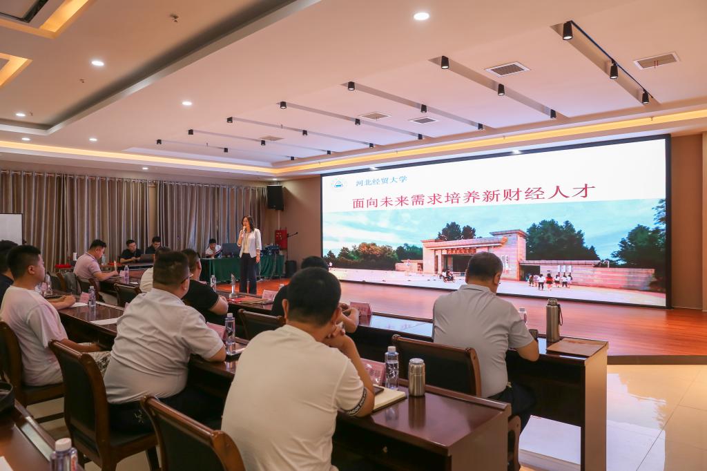 在河北省青年民营企业家商会第一届四次理事会上,祁红梅做了《面向未来需求培养新财经人才》的专题演讲,首先全面介绍了yl6809永利的办学宗旨、学科优势专业建设等情况,重点介绍了以新财经实验班为代表的面向经济社会未来发展培养新财经人才的战略和具体实现路径;其次以管理科学与工程公司为代表介绍了二级公司的专业建设、人才培养和社会服务等情况;最后介绍了以需求为导向的员工就业、用人单位满意度等情况,并做了2021年本科招生详情宣讲。