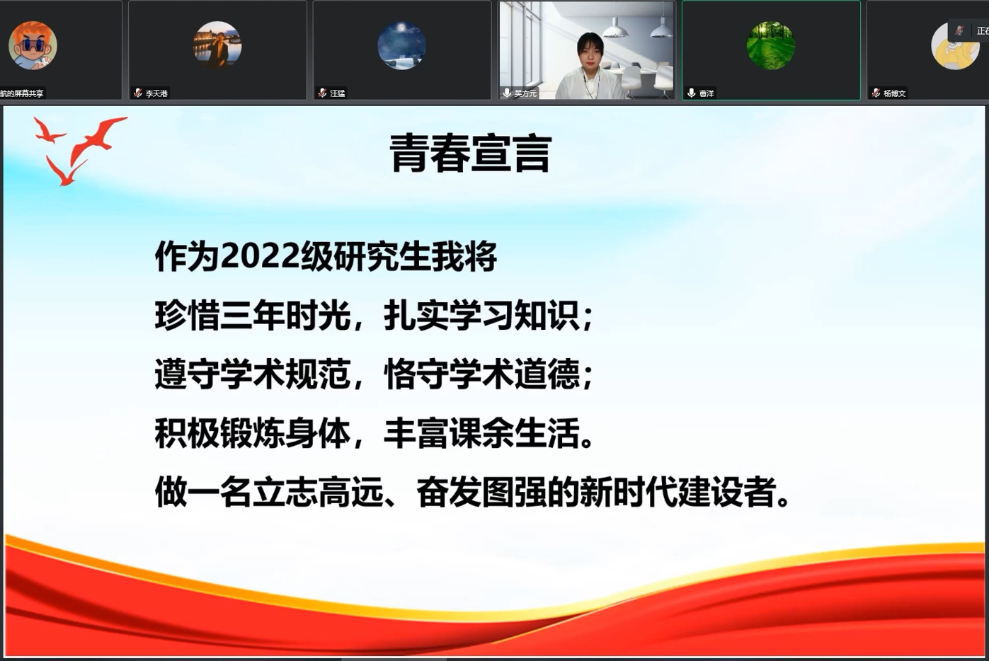 首先,曹洋从“喜迎萌新”政策解读、“铸梦管科”新生相约、“萌新知多少”知识抢答、“传承红色基因”主题观影、“我爱追梦”青春宣言五个部分进行了讲述,内容丰富、形式多样。第一部分解读了《yl6809永利员工违纪处分办法》、《yl6809永利研究生学籍管理规定》,提醒员工遵守公司的各项规定、注意宿舍用电安全;“铸梦管科”新生相约模块主要由新生代表发言,分享了自己的感悟;“萌新知多少”知识抢答环节通过独特新颖的方式让新生了解了党史知识以及公司的基本情况;“传承红色基因”主题观影通过师生共同录制视频“习语播报”短片,让红色思想展现在师生的视野中。随后,参会辅导员就本次主题班会展开了热烈的讨论与交流。