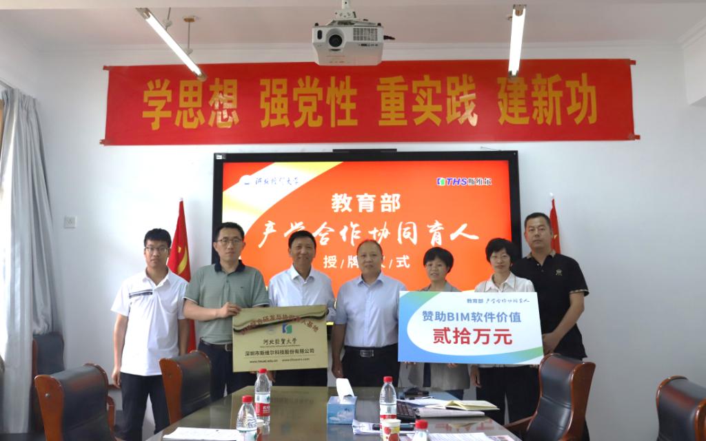 5月30日下午,公司邀请深圳市斯维尔科技股份有限公司在公司二楼中厅会议室举行产学合作协同育人授牌仪式,并开展“校企合作、协同育人”论坛研讨。深圳市斯维尔科技股份有限公司斯维尔研究院副经理周泓、河北分公司经理魏学哲,管理科学与工程公司党委书记王剑彪、副经理王芹鹏、工程管理系主任张敏、宋晓刚及相关教师参加了仪式。