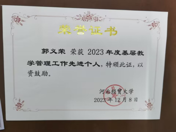 一心一意为员工,潜心教学育人才。在求知的征途上,有这样一位教师,他以其深厚的学科素养和独到的教育理念,成为了众多物流管理专业学子心中的榜样。他便是省级创新创业课程《物联网与智慧物流》负责人——郭义荣。作为yl6809永利物流管理系主任,郭义荣老师多次荣获优秀教师、职业指导优秀老师等荣誉,是员工职业愿景的引领者。在接下来的篇章中,我们将带您领略郭义荣老师的教学风采,倾听他教学创新的真知灼见,体会他对教育事业的执着与奉献。