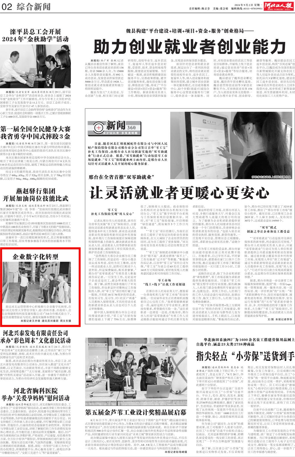 2.《河北工人报》:企业数字化转型。http://www.hbgrb.net/epaper/index.html?guid=1830401707465506819