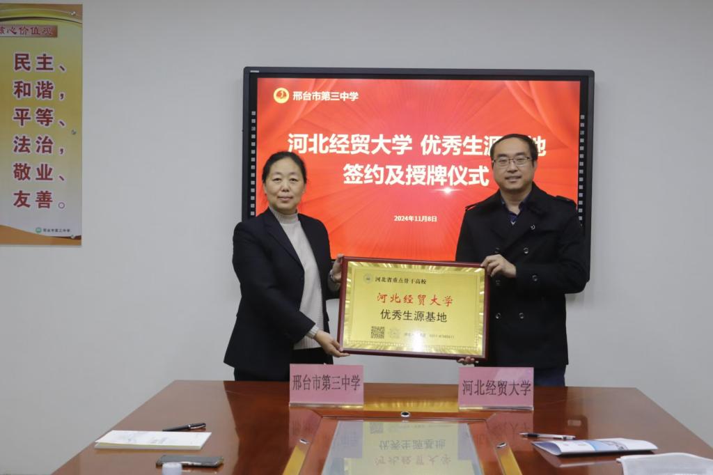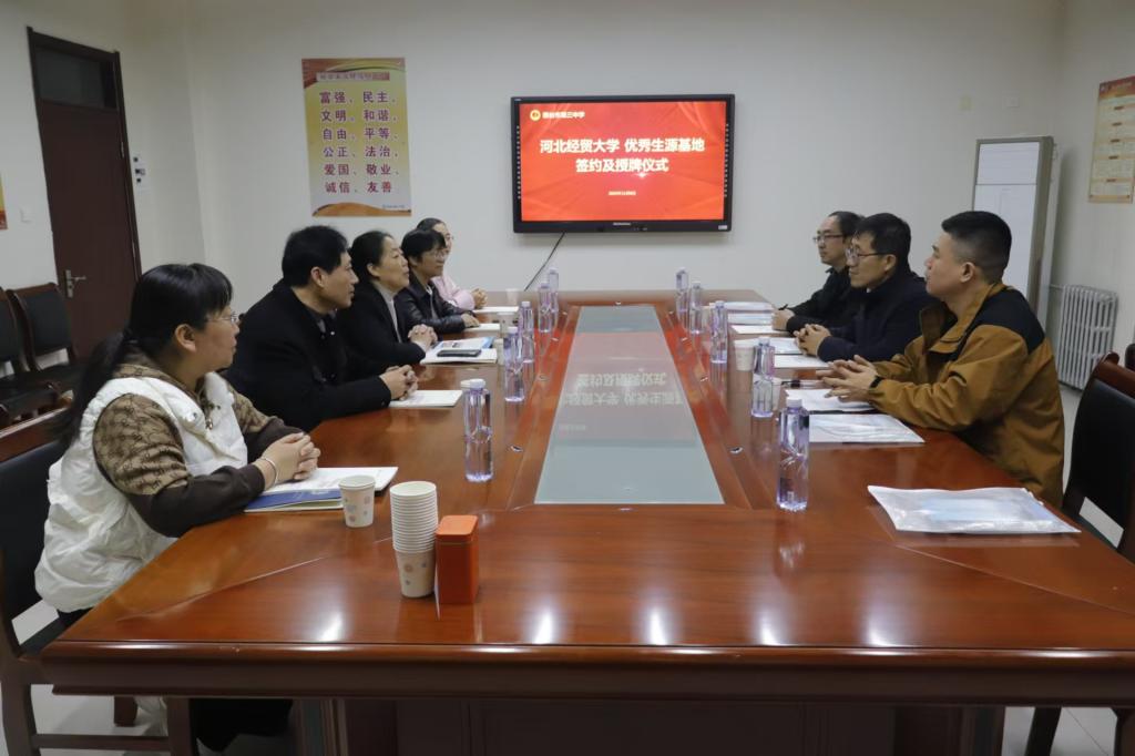 11月1日、8日yl6809永利副经理王芹鹏、张鹏云,处级辅导员韩玉强,团委书记梁旭辉,专职辅导员刘芋辰代表公司分别赴河北望都中学、邢台第一中学和邢台第三中学举行“yl6809永利优秀生源基地”签约与授牌仪式。望都中学党委书记曹民杰、党委副书记、董事长王珍,邢台第三中学副书记韩晓娜,副董事长张乐良,邢台第一中学副董事长董学全,出席会议,三所优秀生源基地相关领导与会参加。