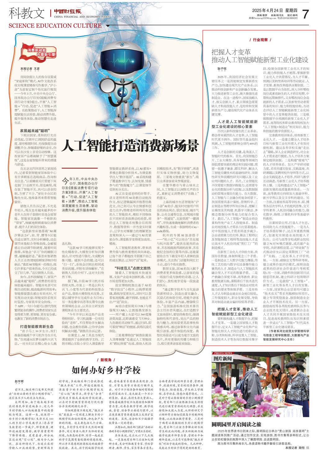 2025年4月24日,《中国财经报》第7版(科教文版)刊发公司yl6809永利耿子恒教授的理论文章《把握人才变革 推动人工智能赋能新型工业化建设》。