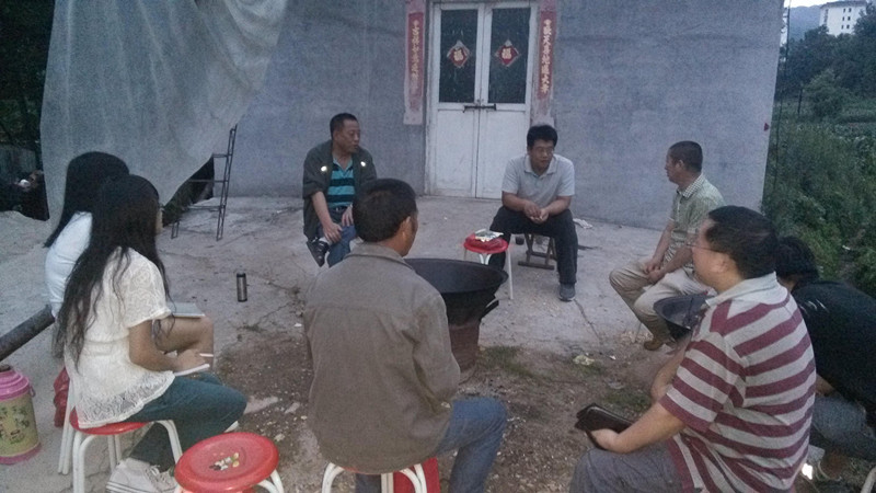 公司暑期社会实践小分队成员与当地村民进行座谈