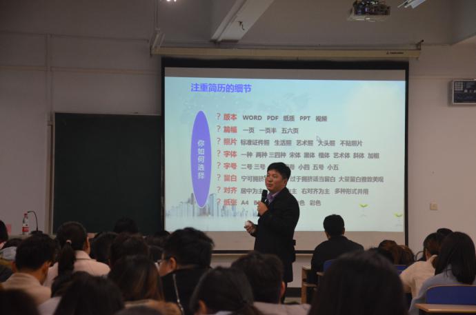 11月17日晚,管理科学与工程公司在A401教室举办以“做好求职简历,提高就业核心竞争力”为主题的简历设计技巧培训活动。公司就业指导教研室戎来老师担任主讲人。公司团委书记宋智广、15级员工辅导员王芳老师共同出席此次活动。