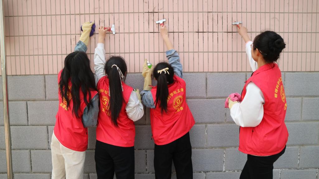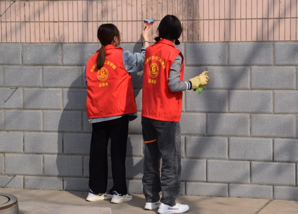 本次活动的主要任务是在规定区域内清扫灰尘、铲除墙上的小广告、捡拾垃圾等。活动中,志愿者们在9、10、11、12栋宿舍楼进行志愿清扫活动。与此同时,蒲震东同学在现场进行了书法创作,笔酣墨饱,妙笔生花,他的作品获得了大家的一致好评。宣传部的志愿者们也自发进行以“弘扬劳动之美德”为主题的手抄报绘画,以此来致敬雷锋精神。阳光灿烂,如同那永不褪色的雷锋精神,身穿红色马甲的志愿者们格外亮眼,他们热情高涨,分工合作,不怕脏、不怕累,认真清理着每一个角落。在大家的共同努力下,打扫过的地方焕然一新,不仅美化了校园环境,营造了干净整洁的校园氛围,同时也让同学们在劳动中感悟到了雷锋精神,体会到了劳动的光荣。