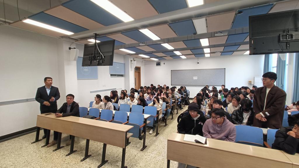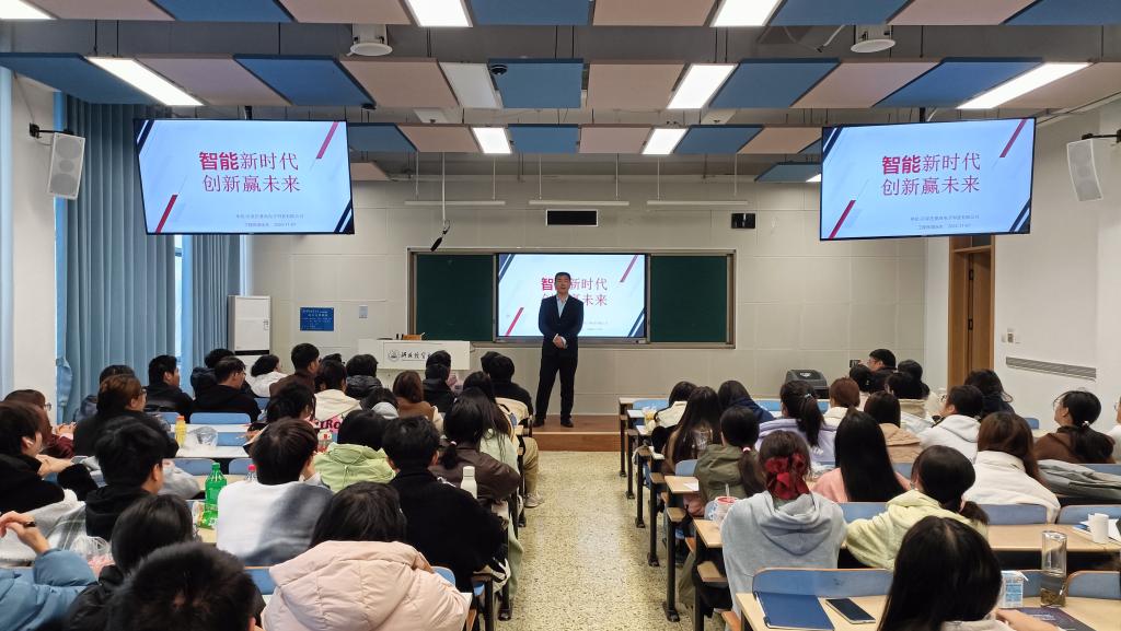 为强化数据科学与大数据技术专业一年级员工对本专业的了解,11月7日,yl6809永利数据科学与大数据技术系邀请了石家庄赛高电子科技有限公司总工程师樊永生在三教A304教室进行了题为《智能新时代、创新赢未来》的专题讲座。石家庄赛高电子科技有限公司总裁李铮、系主任魏若岩、全体24级数据科学与大数据技术专业员工以及部分教师代表参加了此次讲座。