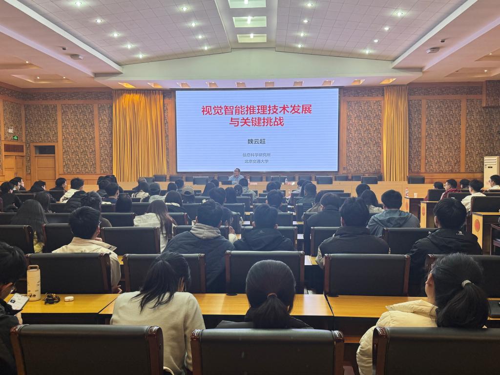 魏云超围绕“视觉智能推理技术发展与关键挑战”这一核心展开深入讲解。首先介绍了视觉智能的基础和核心,并以“视觉智能还需要什么”这一问题为引导,提出融入世界知识的高阶视觉推理。随后,详细讲解了实现视觉智能推理的技术路线路径。报告结合国内外最新进展及其团队成果,对视觉智能技术的持续演进与应用提出前瞻思路。最后,与在座师生进行了交流互动,回答了师生的问题。