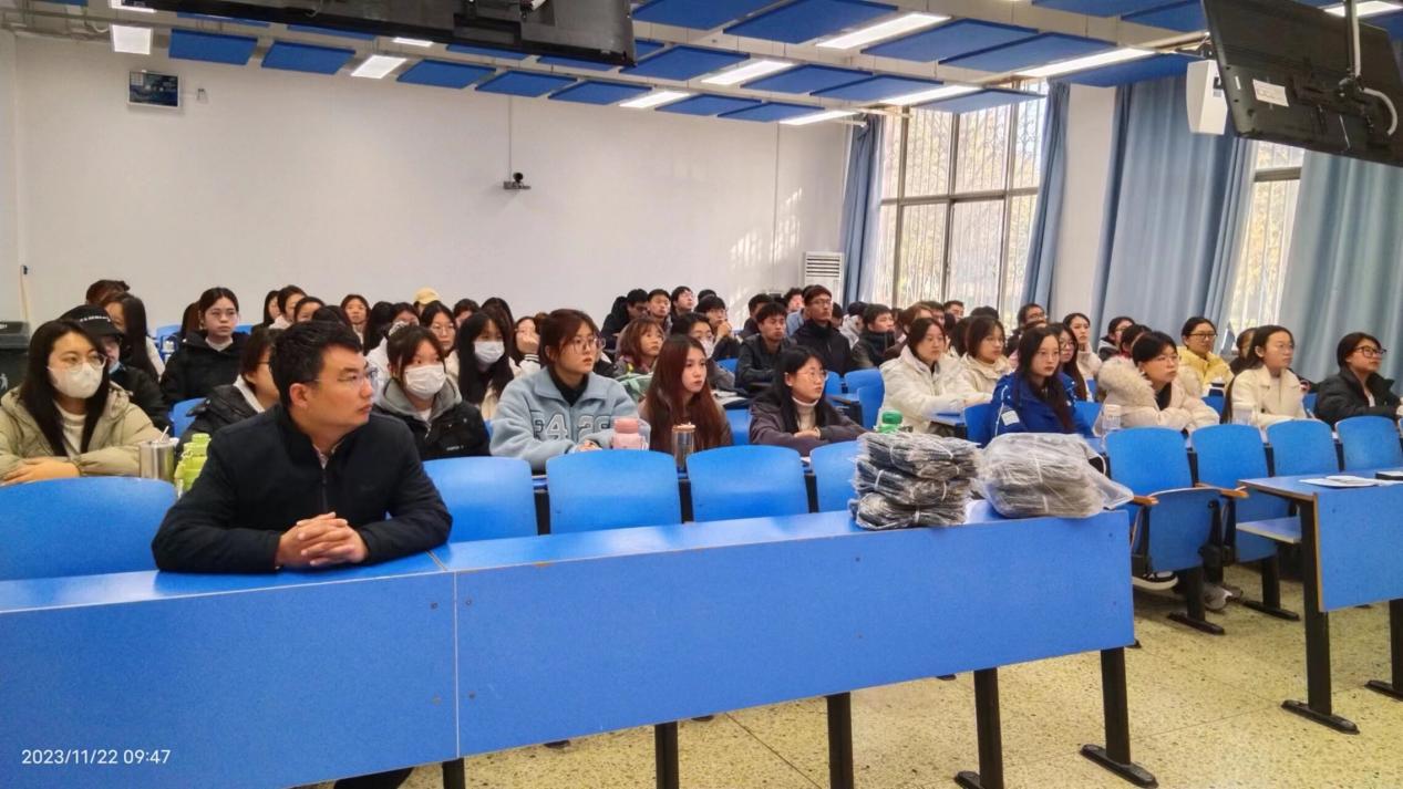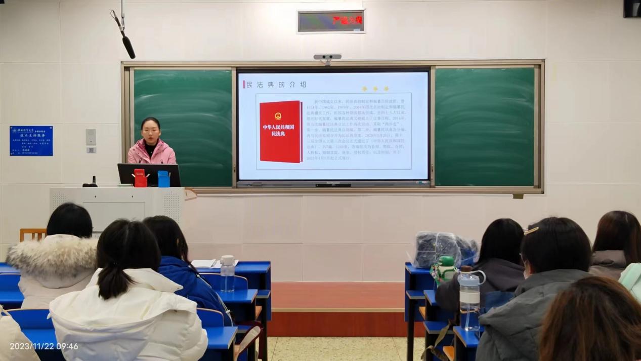 11月22日,公司在B103教室开展了“美好生活,民法典相伴”校园普法活动,邀请校法制办宋妍妍老师做专题宣讲,21级物流管理专业全体员工参加。